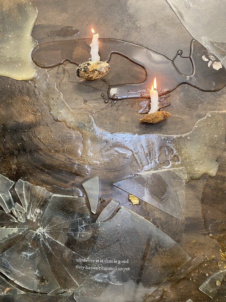 this exhibition included a sound work guard the delight by fer boyd; God’s Gloryhole a play by Fer Boyd & Madeleine Stack; and the poetry collection chaos rehearsals.
